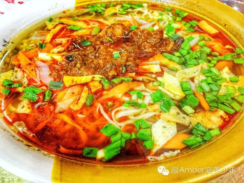 上面菜料超级丰富,下面掩盖着的是宽宽的面条,被热油滚过跟辣椒搅拌在一起,每一口都是那么过瘾,热、辣、香!此时任何形容词都显得很苍白,因为它本身很简单,所以只能用好吃二字来形容。