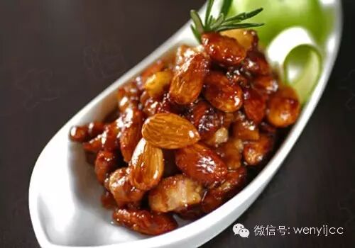 **美国大杏仁是一种非常好的零食。这些年,越来越多的餐厅和主妇将它作为一款给菜品添彩儿的烹饪原料。当然,咱们的这款菜,你可以选用美国大杏仁,也可以用去皮的花生米替代,或其他干果,适合家人口味的就是最好。