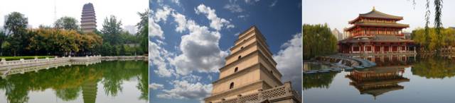大雁塔:位于市区南部大慈恩寺内,初建于唐太宗时期,塔内和玄奘三藏院分别供奉的佛舍利和玄奘法师的顶骨,是大慈恩寺的“镇寺之宝”。