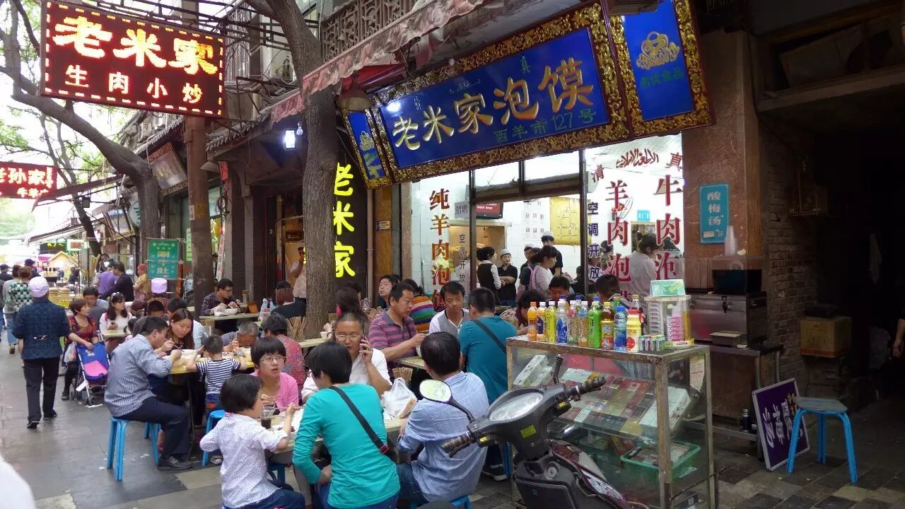 在这里你能够吃到几乎所有的西安小吃,包括:各种烤肉串、羊肉泡馍、灌汤包子、麻辣羊蹄、水盆羊肉、酸菜炒米、腊牛羊肉、凉皮、羊肉饼、八宝甜稀饭、糊辣汤、蛋花醪糟 ……