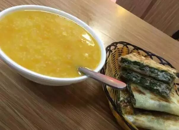 店家提供了小米、麦仁和玉米糁三种粥,粥的香浓更接近于家里的味道。