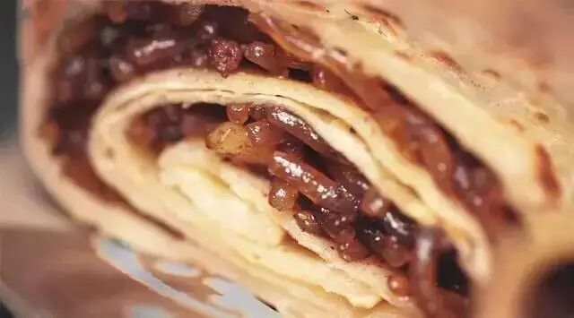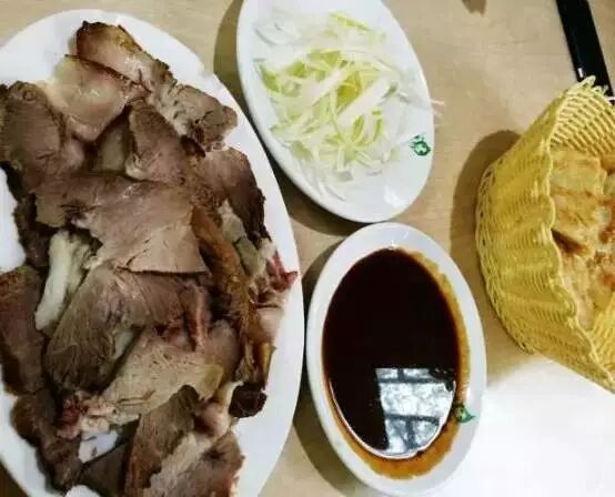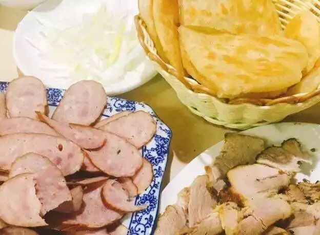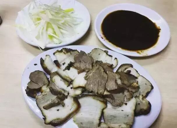 饼是现烙的,新鲜热乎。夹一筷子肥而不腻、瘦而不柴的熏肉,蘸上酱汁,裹上葱丝,这味道,汁香满口,吃着爽快。