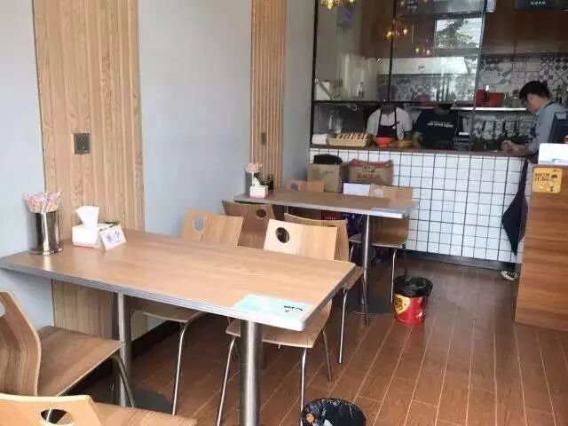 老潼关肉夹馍店。干净的木质桌椅,简约的装修风格,让小店多了几分朴实温馨。
