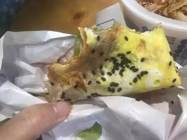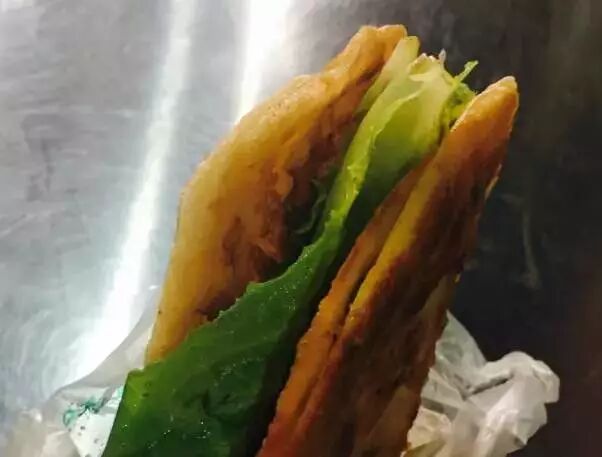 新鲜的菜叶,酥脆的煎饼,再撒上颗粒饱满的大芝麻粒子,足以看出老板的用心。