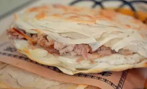 肉夹馍,大街小巷随处可见的简易美食,广为人知的是使用白吉馍的腊汁肉夹馍和老潼关外焦里嫩条纹清晰的潼关肉夹馍。