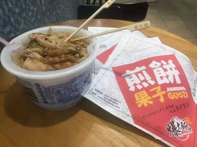 爆大碗家除了牛肚是特色,煎饼果子做的也是不错的。吃一口香辣牛肚,来一口酥脆的煎饼果子,既缓和了牛肚的辣,也让一顿简餐变得丰盛起来。