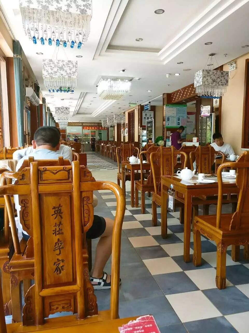 堂内餐桌摆放的很统一,很整齐,古色古香的餐椅,刻有店铺名称,让老店的印象在顾客脑中印的更深。