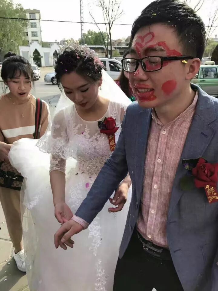 新郎脸被涂鸦