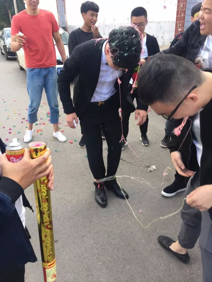 新郎脚被绑