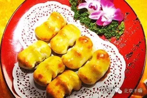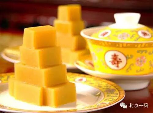 豌豆黄分粗、细两种。 北海公园(攻略) 仿膳、漪澜堂卖的是细豌豆黄儿。庙会上卖的则是粗豌豆黄儿。这是用沙锅将豌豆煮烂成泥,加上小枣,淀成粉坨,扣出,切成像切糕一样的菱形块,用手推车运至庙会上兜售。由于大多出现在春天的庙会上。因此,人们听了他们吆唤:“哎,这小枣的豌黄儿大块的咧!”就感到有新春的意味。因为此种吃食不太卫生,所以是个被禁止的品种。现已绝迹。