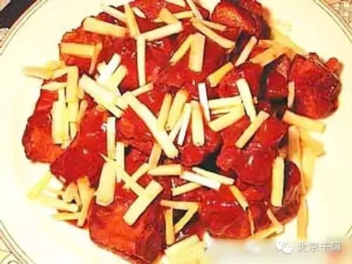 过去老北京家家户户一到过年,就得准备豆儿酱,豆儿酱这名字挺好玩的,光从名字看不出是啥,其实就是升级版的肉皮冻。只是还要往里多搁几种材料:像豆干、胡萝卜、水疙瘩、黄豆、土豆什么的,一直是北方人过年的必备凉菜。