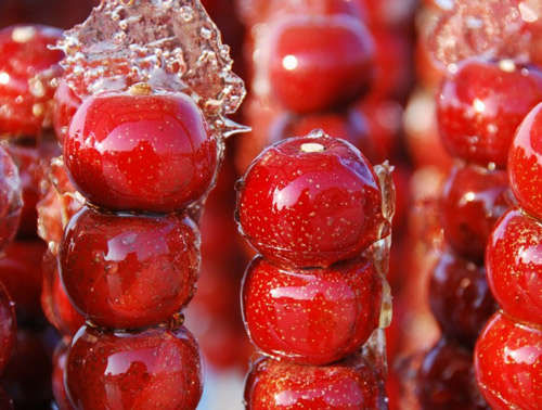冰糖葫芦是中国传统美食,它是将野果用竹签串成串后蘸上麦芽糖稀,糖稀遇风迅速变硬。北方冬天常见的小吃,一般用山楂串成,糖稀被冻硬,吃起来又酸又甜,还很冰。