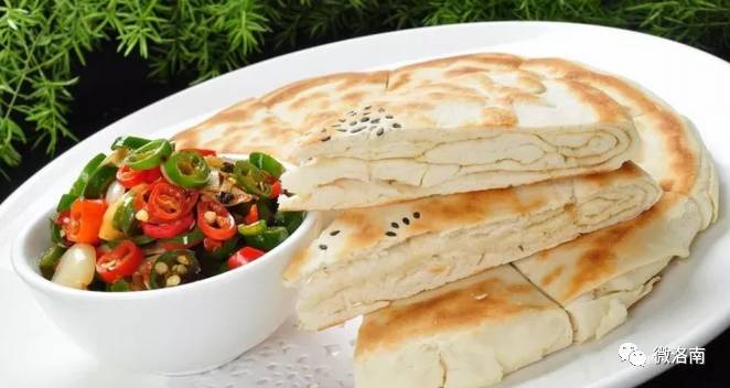 洛南地处秦岭腹地,是黄河流域和长江流域接壤过渡带,有独特的气候,是商洛地区唯一一个黄河流域的县域,造就了其独特的食物美味。在家里,每次来客时,锅盔夹辣子必不可少。母亲总是为我们烙制一个大锅盔,锅盔工序先将面粉加老面发至蜂窝状,将发好的面团加入食用碱制面坯,将面坯入锅烙至为两面金黄即可,锅盔入口越嚼越多,嚼劲十足,下咽回香无穷,吃起酥、闻起香、耐存放、寿命长;同时线辣椒洗净切丁,大蒜去皮切末,葱切末,炒锅上火,加入少许食用油,七八成熟时,放入蒜末、葱末爆香,放入青椒,大火翻炒几下,加盐,味精拌匀出锅即可。此时如果把锅盔加上辣子,颜色分明看着就有食欲,咬上一口,满嘴油,满嘴香,让人回味无穷。