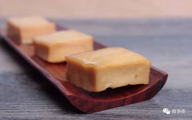 在洛南,还有一道不得不提的菜——洛源豆腐干,在家里厨房里,时时挂着一串一律一寸见方,双筷薄厚,以青肯藤穿连的豆腐干,食用时只需用刀切成薄片,点几滴酱醋即可下箸就酒,吃起来香爽油咸,柔劲适口,若拌以蒜泥、芥末、葱段、麻油等佐料,美味异常。有时候,突然拿起一块,直接入口,也有一股别样的味道。