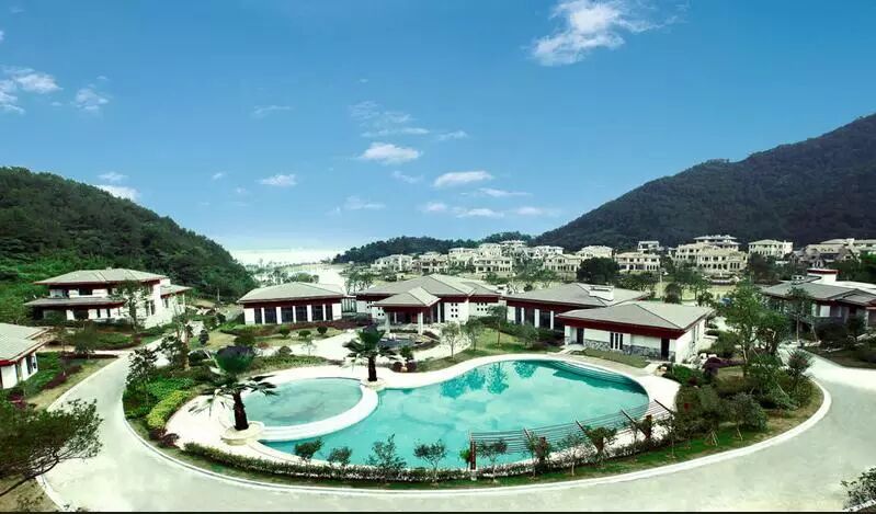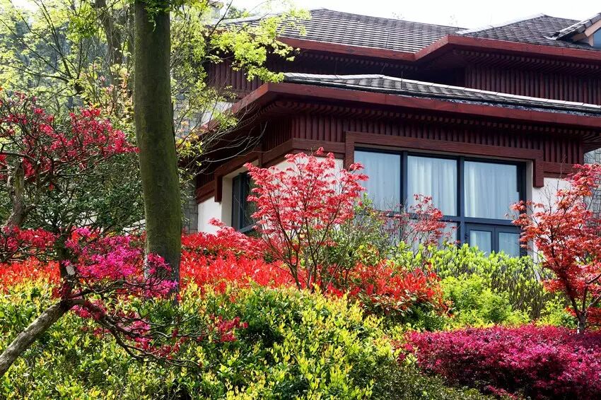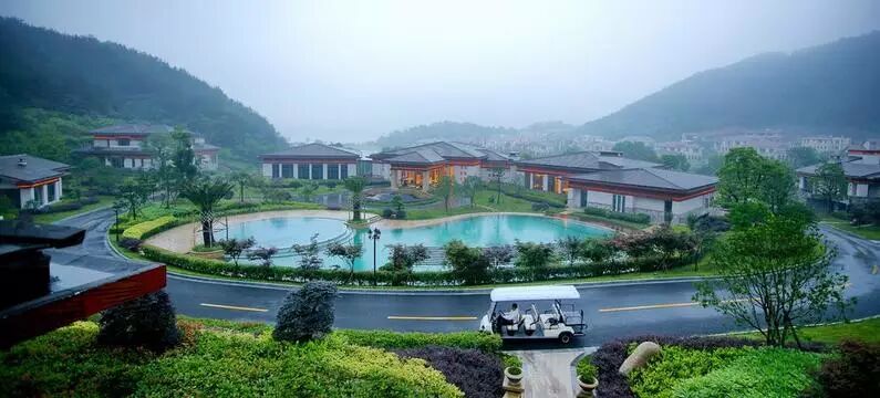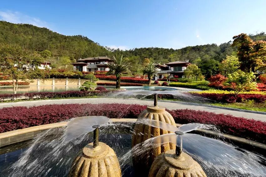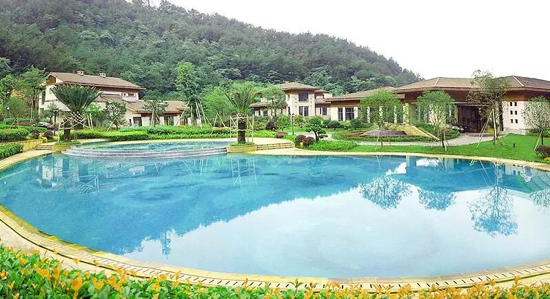 千万不要以为这里没有开阔的湖景便失了颜色,没了生气。从小口子进到大肚子之后,碧蓝的游泳池和天然湖泊都很美,几栋红顶别墅围绕其周,掩在青山之间,分不清谁比谁更美。1座五星级酒店、20余席别墅就生长在700余亩湖岸、花园、山谷中,仿佛这就是你心中目中最喜爱的度假行宫。
