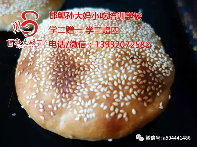 邯郸孙大妈小吃培训学校,老北京芝麻烧饼培训,可做成甜的、咸的、五香的、豆沙的、枣泥的、果酱的等多种口味。