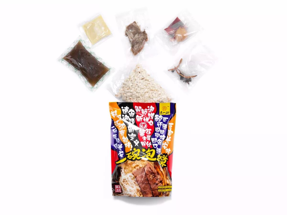 内含:馍粒×1、羊肉包×1、羊汤×1、羊油×1、配菜×1(包含粉丝、黄花菜、黑木耳)、佐料×1(包含辣酱、糖蒜)。