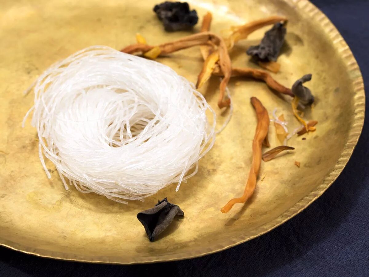 还搭配了粉丝、黄花菜、黑木耳等配菜。