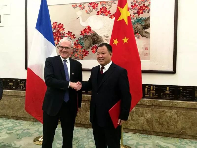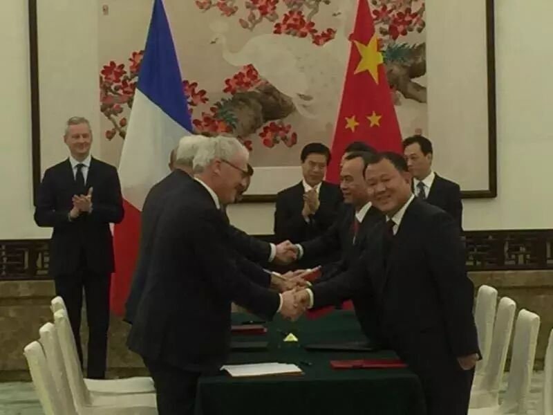 1月9日下午,我市与法国电力集团合作的多热源多能互补集中供热项目成功在北京签约,、、法国经济和财政部部长勒梅尔等共同见证,市长何军与法国电力集团董事长兼总裁乐维共同签署合作声明。