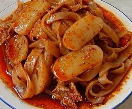 额碎碎滴斯候,撕狗胡然滴斯候,额滴外婆总会拿糖哄额。背不住以后,姥姥滴歌安慰额,喂首歌好像这样唱滴:天黑咧,地暗咧!天黑哦,哦哦。病好滴斯候,离开凉皮么法活,酸酸滴醋,红红滴辣子,豆芽和面筋,偶尔不够滴斯候,额忘记,咥凉皮奏不饿:豆芽哦,辣子哦,辣滴很,辣哦。