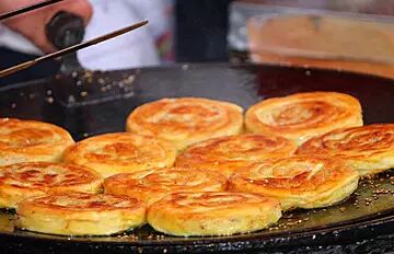 军乐镇“酥锅魁”,又名“酥油千层饼”,是四川传统小吃。历史悠久,做工考究,独具风格,以香、酥、脆、细嫩化渣而名扬川西。