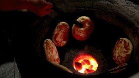 兹好油的锅盔再烤一下就可以放到炉子里面让明火烤了