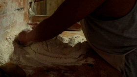 从大盆里取出一坨面
