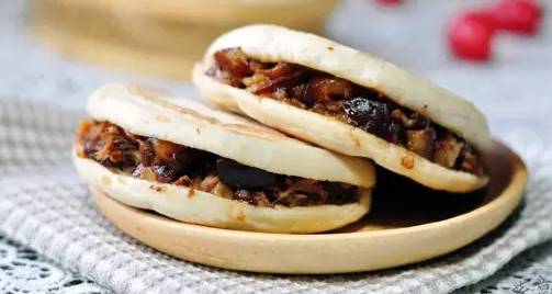 现在流行的锅盔有两种,一种是军屯锅盔,也是最传统意义上的锅盔。一团熟面被师傅左抛右翻的拼命砸打一番后,在案板上拍成长条状,依次抹上菜籽油,鲜肉馅(猪肉或牛肉),翠绿的小葱花,再合成圆圆的一块面饼,放在铺满热油的铁板上煎得两面金黄。只要不怕烫,对准还在“滋滋”冒油的锅盔一口咬下去,外焦里嫩,肉香葱香,入口化渣,也许会让你叫上第二个。另外一种锅盔是用上好的面粉做成白面馍馍,里面夹各式冷菜,亦荤亦素,种类很多:酱汁卤肉、麻辣肺片、五香大头菜、凉拌三丝、红油耳片、青椒回锅肉、烂肉豇豆…