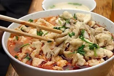 涮牛肚是很有特色的陕西小吃,在西安大街小巷都有售卖,小到地摊,大到连锁店,都有这种经济实惠的美味小吃,很受各位食客及当地人喜爱。涮牛肚涮烫的做法历史悠久,把新鲜的牛肚肉切成片,用竹签穿起来,在高汤里煮熟,然后蘸上由的芝麻酱、辣椒酱、各种调料做成的汁子,浓香筋道,美味又可口。