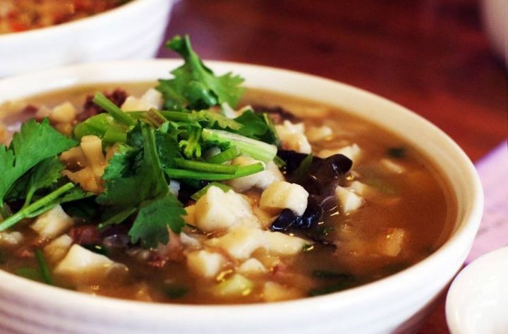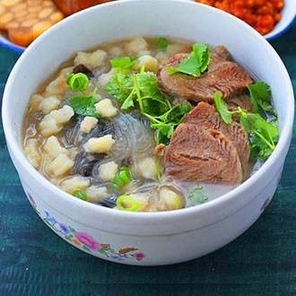 泡馍是土生土长的西安吃食,相传宋太祖赵匡胤落魄时,流落长安,正值寒冬,饥渴难耐,囊中只有一饼,饼冷口干,难以下咽,街边一家卖羊肉汤的老板,见之不忍,给了他一碗热气腾腾的羊肉汤。赵匡胤将饼掰碎泡入,吃完顿觉神清气爽,豪气冲天,一扫颓废心情,踏上征程。