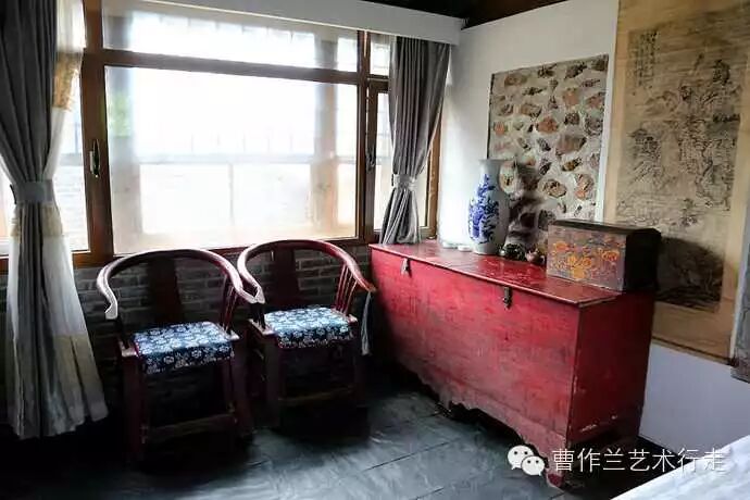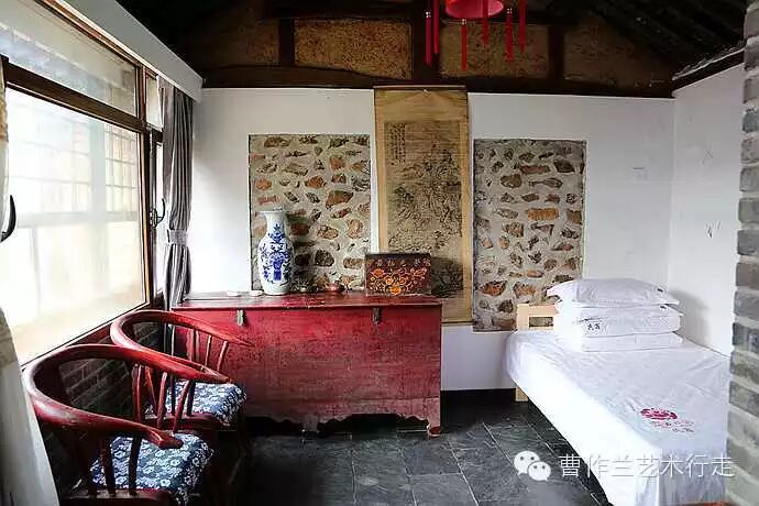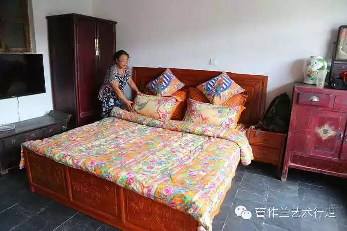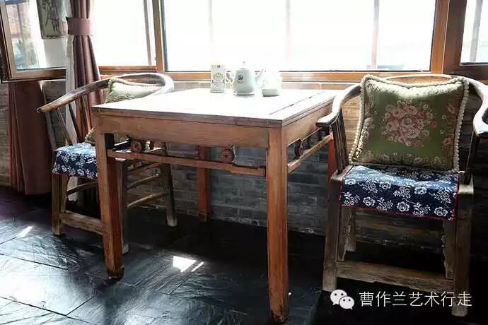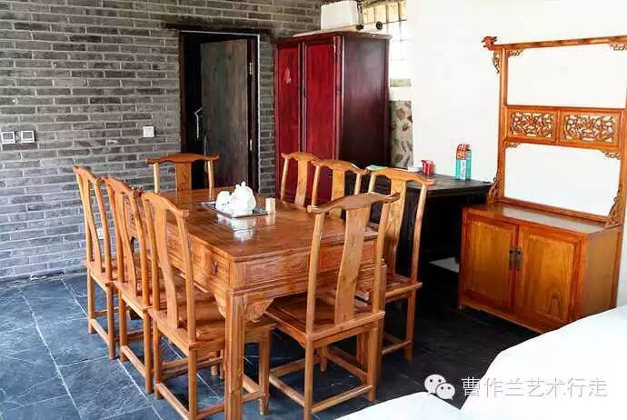 西边一间有老式八仙桌和老式太师椅。这个房间有两张单人床。