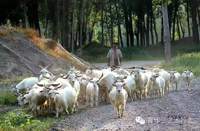 村边有大片的树林,一群群的白羊从树林里走过,煞是好看。