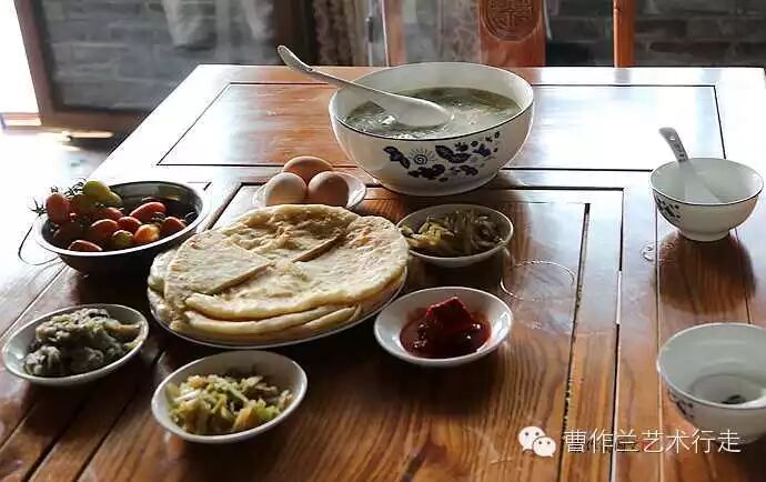 这是我们三个人的早餐,疙瘩汤特别香,这可是含在饭费里面的,不另外收钱。