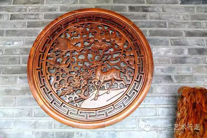 室内整体风格是怀旧。这是墙上的仿古木雕。