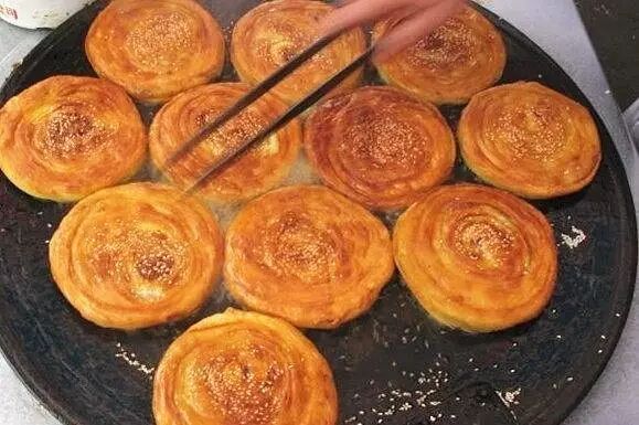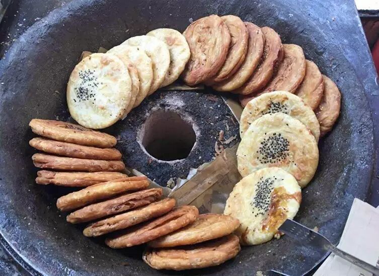 锅盔有几种,先烤后煎的军屯锅盔、方形硬脆的南充锅盔,还有包满红糖浆的小圆锅盔~