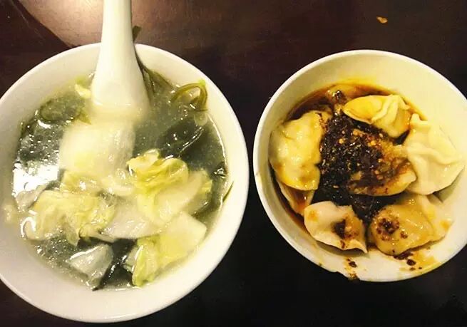 这家可以一份吃到三个味道+骨汤煮白菜,最爱干拌抄手,泡菜也不错哦~