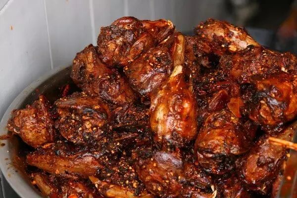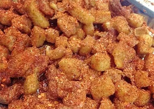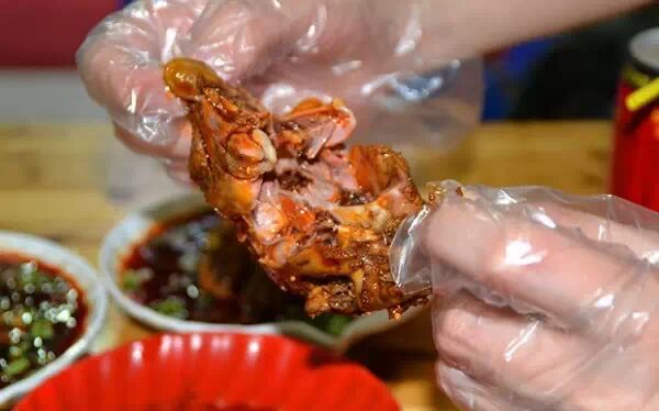 一个超大盘子装的兔头,是烤的,烤了后再上料。刚开始吃的时候会觉得很干,有点吃不惯。后头就越吃越香,越吃越好吃,越吃越停不下来。还有兔腿可以买!![]()