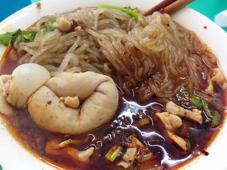 这家的肥肠粉和担担面都还不错,肥肠粉的特别之处是在里面加入了新鲜的二荆条和小米辣碎,有一种清新的鲜椒味道~