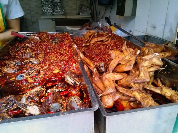 麻辣的、五香的,还有洒满花生米的、或者买的时候再进卤水中再卤一下,而且一般店家都会稍微砍开,这样比较方便吃。一次最起码要啃5、6个才爽!