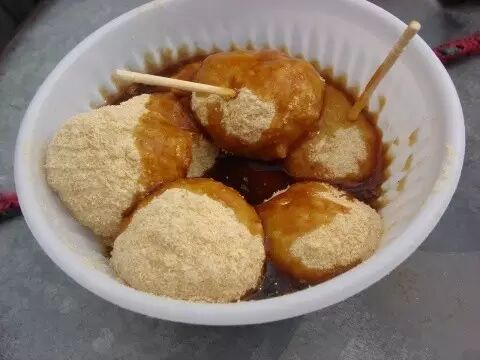 街边的糍粑一般是一个铁箱子,把煮熟的糯米放在里面,搅动就可以研磨,出来的糯米球掉到黄豆粉箱子里,再浇上浓浓的红糖~
