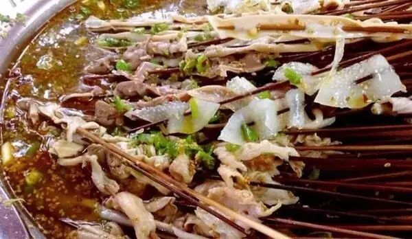 天气变暖,就要吃钵钵鸡!当然最好吃的一定是在乐山,串好的肉和菜浸泡入味,吃的时候吃多少拿多少。