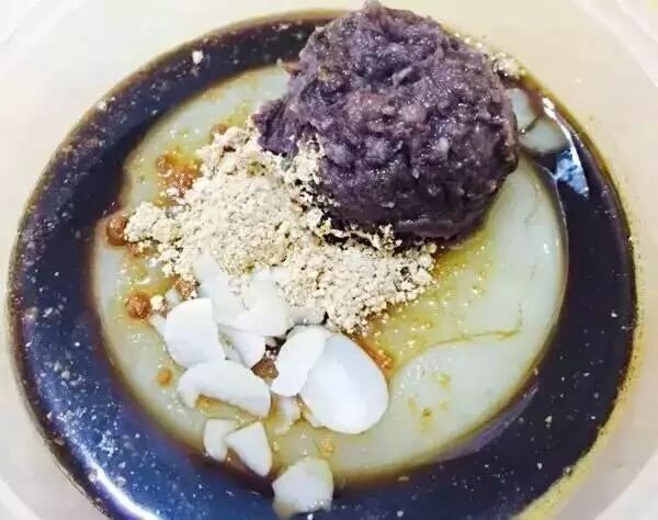 这个是我在雅安吃到的煮凉粉,热的,吃之前和酱料拌匀: