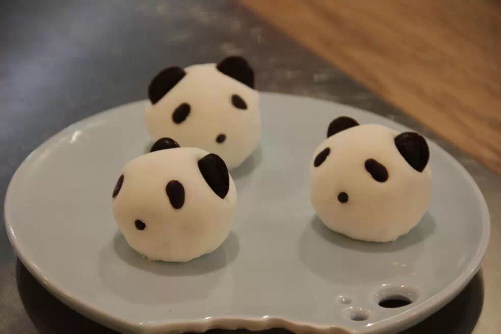 天府熊猫比较乖,拍照可以点~里面是植物奶油、水果和巧克力,味道一般哒。