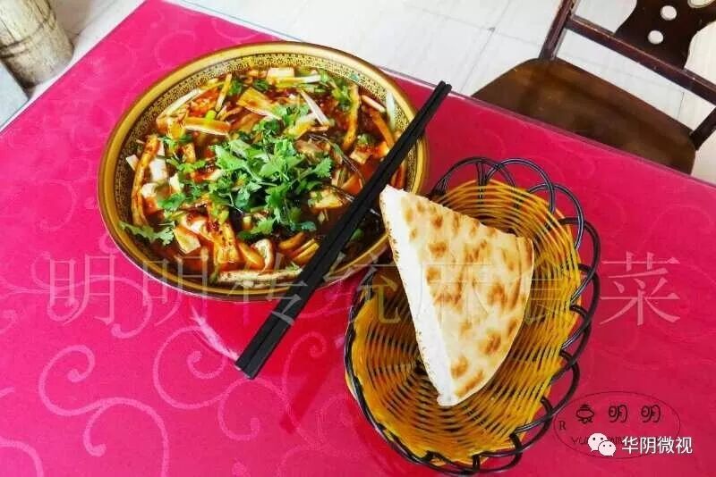 麻食菜是华山的特色小吃之一,明明传统麻食菜不但可以泡馍吃,还可以就着馍吃!还有特制的红烧肉哦!并在传统麻食的基础上增加了有益人体健康的海带和香菜,还特别推出玉米面馍让您追忆过去,忆苦思甜!