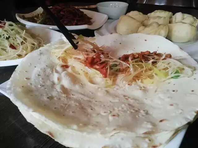 6月22日,由西部网、陕西头条客户端联合主办的“聚力十三五·走读新陕西”大型采访采风活动在华阴市启动。这是该活动继咸阳礼泉、延安富县、。 作为西安本土专注于搜罗吃喝玩乐的自媒体公众号,西安高大尚有幸参与采访团当中,就华阴人喜爱的美食分布地图进行了探访…西安人喜欢吃泡馍,华阴人则每天早必来一碗小翠的麻食菜,麻食菜是华阴地区特有的风味小吃,可与西安的羊肉泡媲美。麻食做工精细,色味俱全,碗面漂一层油泼辣子和飘香的大油珠子吃麻食菜必须得有锅盔,华山锅盔与其他地区略有不同,加入了茴香芝麻,烤制完成之后,更加的香脆可口。擀馍是华阴著名的小吃,一种圆形、特性的碱面饼。将碱面揉好,擀成薄饼,烙熟,趁热抹上水、醋、油混合液,一张一张塌起来,用布盖好,放约半小时食用。擀馍卷上菜肴,吃起酥香,老少皆宜,华阴人过节、待客多用擀馍。也叫烙馍卷菜。清代顺治年间,方文来中原做客时,在其《北道行》中这样写到中原的烙馍:“白面调水烙为馍,黄黍杂豆炊为粥。北方最少是粳米,南人只好随风俗。”从这可以看出,烙馍这种民间的面点食品不但历史悠久,并且久有名气。清汤羊肉与西安的羊肉泡馍是大不相同的。是将煮好的羊肉切成大片,放上粉丝,蒜苗、香菜,浇上羊汤,即可食用,原汁原味大刀面是华阴地区传统美食之一,有着悠久的历史及丰富的文化内涵;它系用双杖擀成,铡刃(大刀)切就,故名华阴地区特色的面食,名字宛如华山般的气魄。面条做好盛入老碗,分为干汤两种,食者上前大快朵颐,一口未及咽下,急嚼第二口,一碗下肚,满头热汗,鼻耳畅通,还想再吃,肚腹难容,一步徘徊,怏怏离去,这感觉,爽翻了![]()
