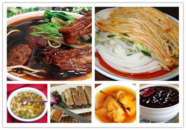 兰州牛肉面特别出名,具有“一清、二白、三红、四绿、五黄”的特征,且色香味美。它清淡、爽口、实惠、价廉,来到兰州一定要品尝一碗原滋原味的牛肉拉面。除了誉满全国的“兰州拉面”,这里还有炒面片、凉面等,黄焖羊肉、胡辣羊蹄等。
