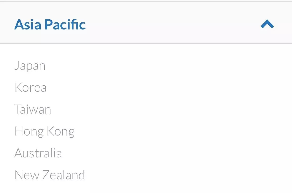 澳大利亚,日本,韩国,台湾,香港,新西兰