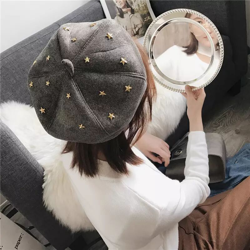 敲俏皮的八角帽上线咯,是不是看到图就超爱的! 几款颜色都很适合秋冬的季节,在秋冬都是黑白灰的世界,绝对很吸睛又洋气 ,觉得看到就有好心情,选定的料子质感也很好, 帽顶星星元素的添加给纯色的帽子增加一丝亮点 戴着会非常气质。