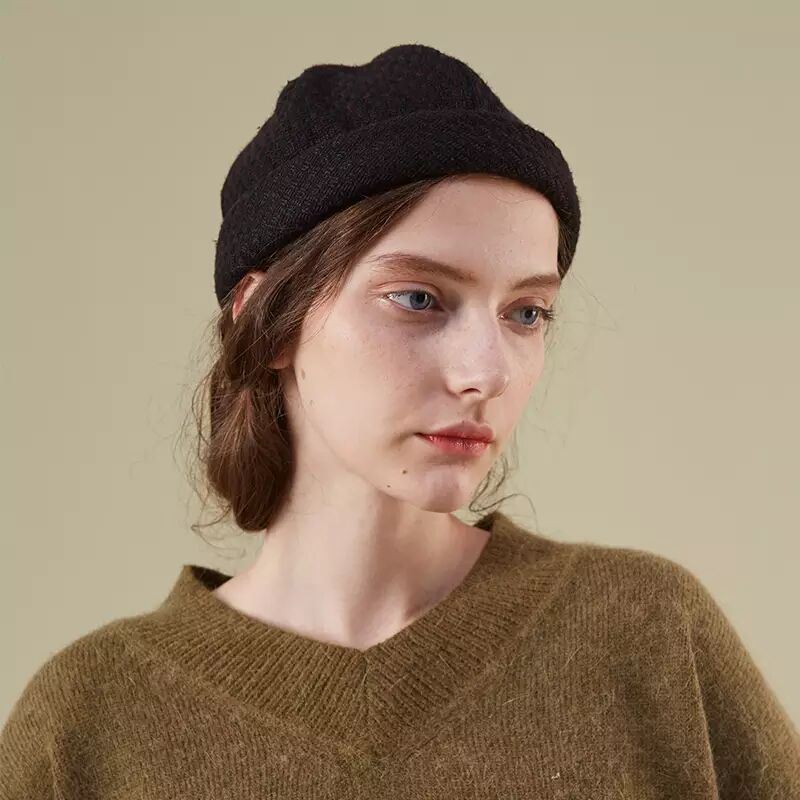 ▼欧美英伦风百搭大平沿羊毛呢帽