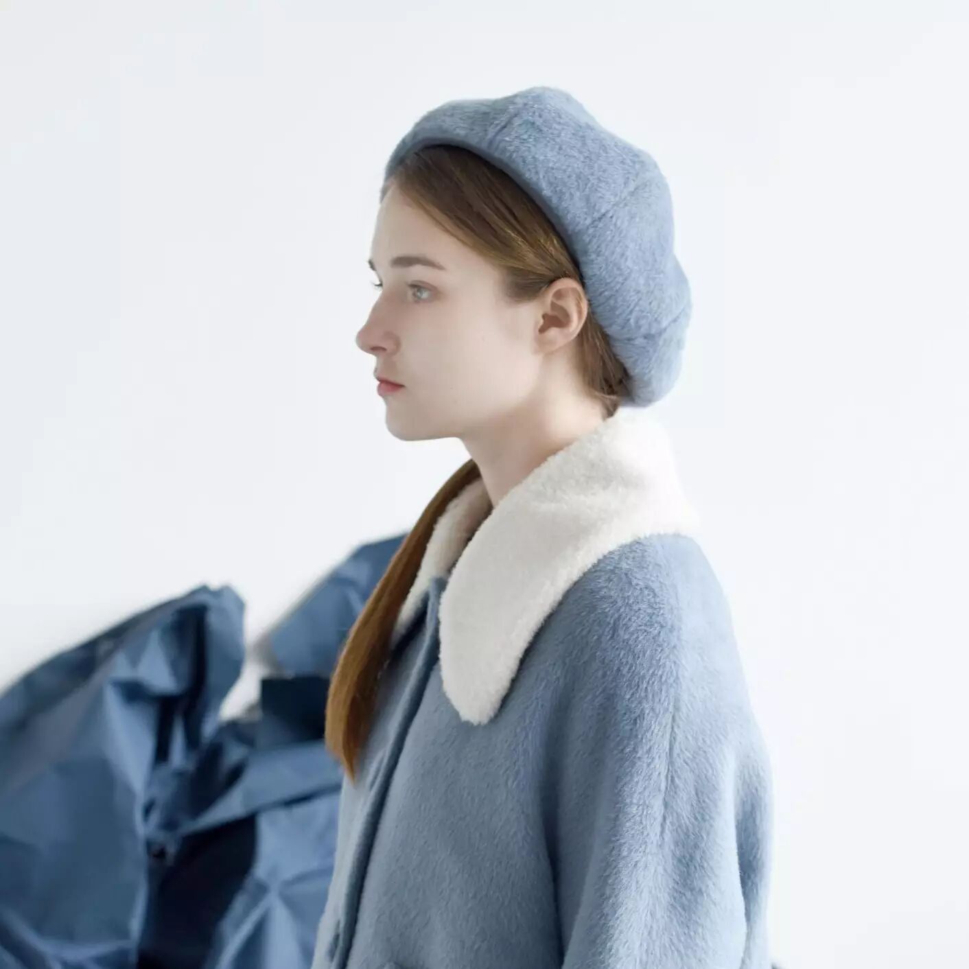 超美的雾霾蓝贝雷帽,有一种复古的柔美感觉,做为修脸小能手的贝雷帽可以兼顾百搭性能,不论是什么发型都可以轻松演绎自己的日常风格。